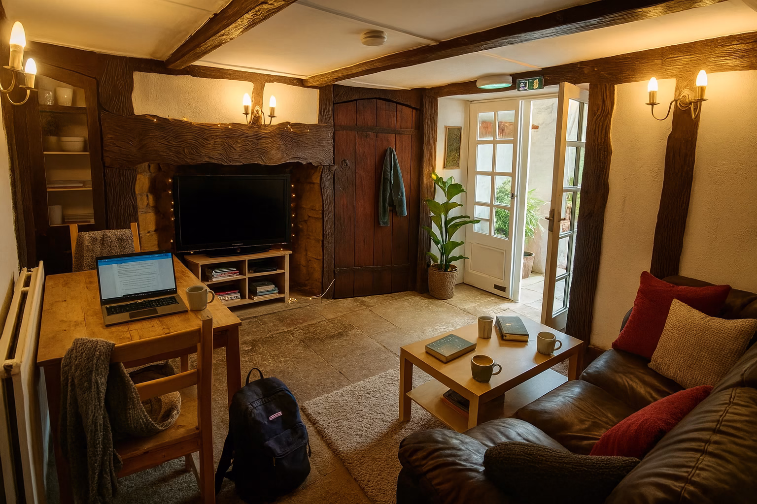 The communal lounge area is perfect for relaxing with friends, featuring a 40-inch smart flat-screen TV (TV license included in rent), a dining table, a big, comfy sofa, and controllable gas central heating throughout.